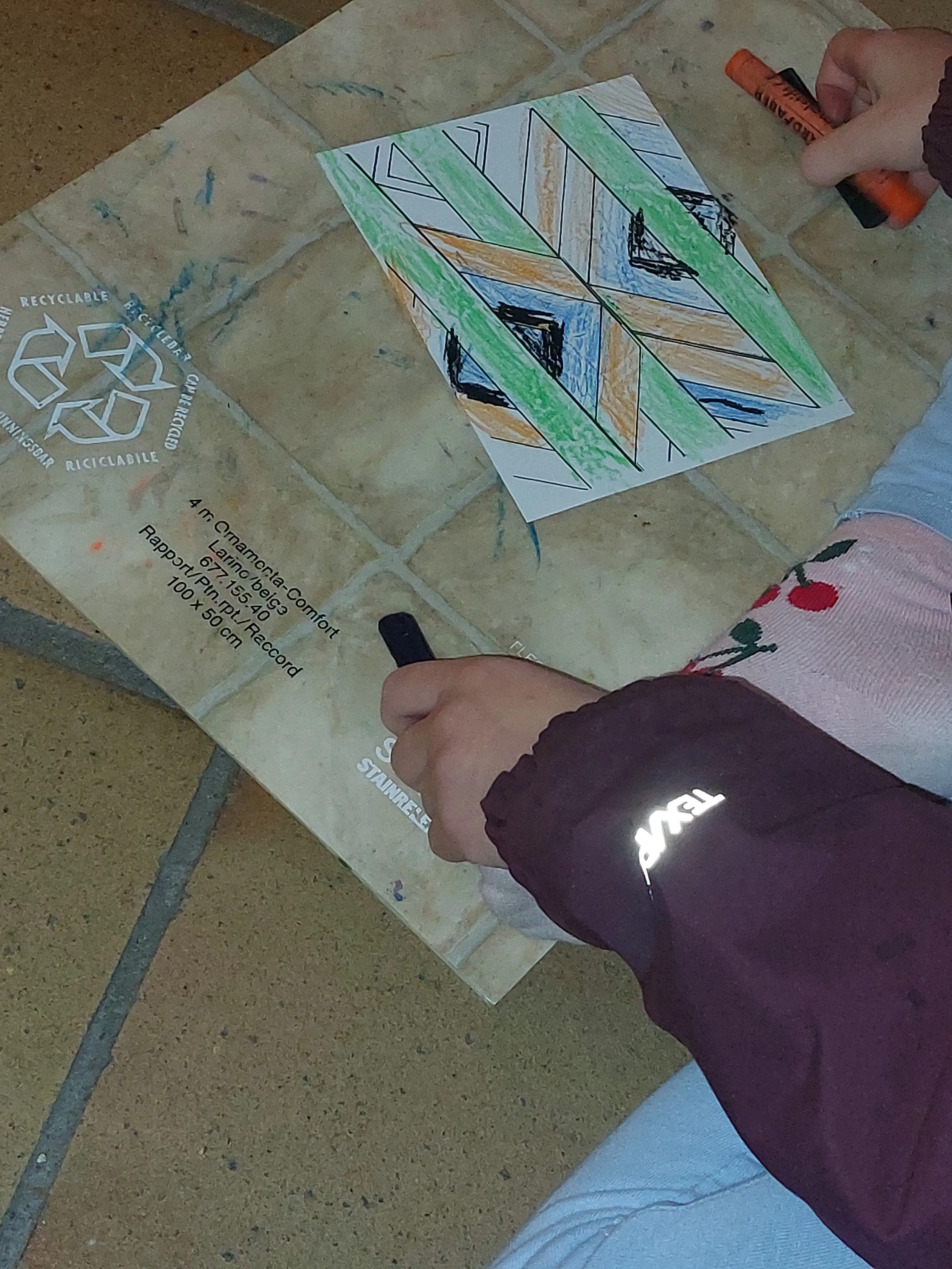 Langgelegt auf den Stühlen haben sie sich, mit dem Blick zur Decke, bei Flötenmusik genau auf die Farben und Muster geschaut, und dann ganz konzentriert mit Ausdauer und Ruhe die Farben in die Formen gebracht.