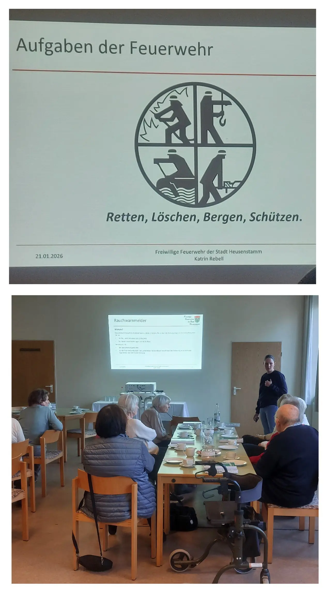 Katrin Rebell von der Freiwilligen Feuerwehr Heusenstamm kam zu uns in den Seniorennachmittag und stellte uns die Aufgaben der Feuerwehr vor und was wir zu Hause tun können, um Brände zu vermeiden.